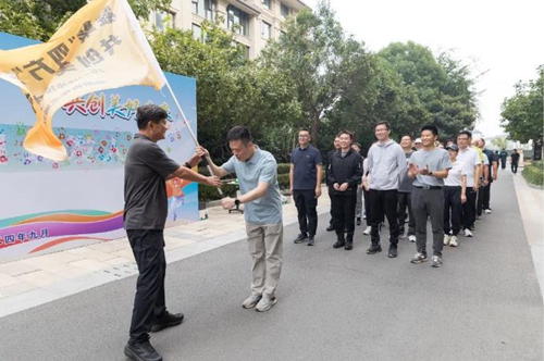 經(jīng)過三個多小時的同行,各隊陸續(xù)順利抵達終點,圓滿完成了13公里的徒步任務。奔赴終點處,各隊旗手分別向集團黨委書記、董事長萬永生遞交了象征著隊魂和榮譽的隊旗,萬董事長接過承載著大團結大聯(lián)合力量的旗幟,徒步階段圓滿結束。