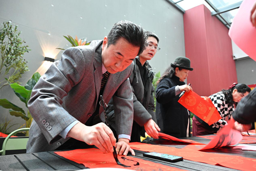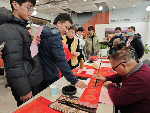 活動當天,鄭州市文聯(lián)的書法家們受邀來到現(xiàn)場。他們個個精神飽滿,手執(zhí)毛筆,在一張張紅紙上揮灑自如,書寫著寓意深遠的新年序言。這些序言既是對過去一年的總結,也是對新年的美好期許。書法家們的精彩表演贏得了現(xiàn)場觀眾的連連稱贊,租戶們紛紛表示:“書法家們寫的字真是太好了!‘福’字看著就喜慶,春聯(lián)的寓意也都非常美好。”