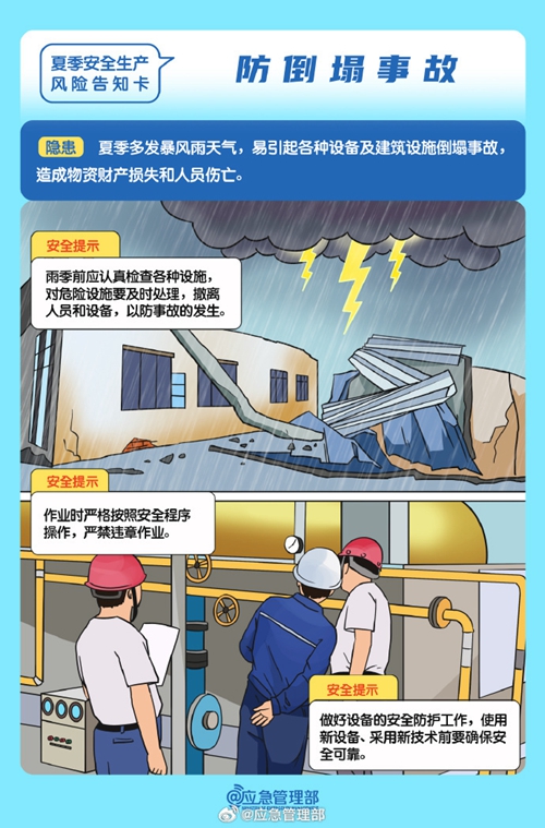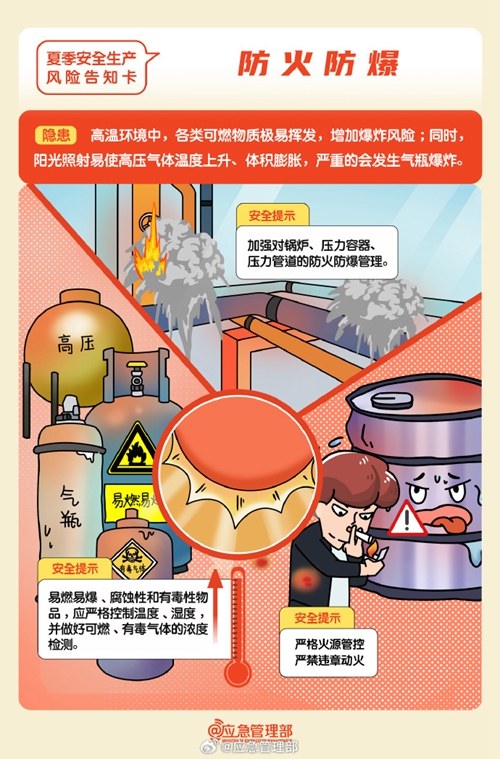 高溫天氣下安全生產(chǎn)工作要關(guān)注哪些風險隱患?如何防范?這組風險告知卡請查收↓↓↓