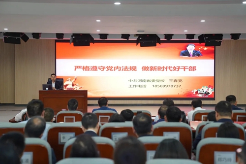 集團(tuán)黨委邀請河南省委黨校中共黨史教研部王春亮副教授,以《嚴(yán)格遵守黨內(nèi)法規(guī) 做新時(shí)代好干部》為題展開宣講。王教授分別從紀(jì)律嚴(yán)明是黨的光榮傳統(tǒng)和獨(dú)特優(yōu)勢、黨員干部嚴(yán)格遵守黨內(nèi)法規(guī)的迫切性和做嚴(yán)守黨內(nèi)法規(guī)好干部的主要著力點(diǎn)三個(gè)方面宣講,號(hào)召全體黨員干部要以黨紀(jì)學(xué)習(xí)教育為契機(jī),上好黨性鍛煉“必修課”。