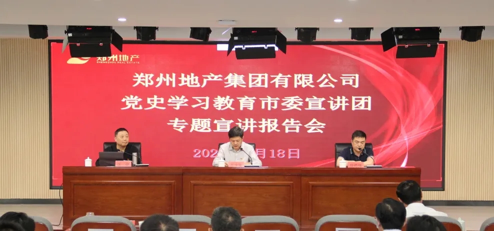 為持續(xù)推進黨史學習教育走深走實,5月18日上午,鄭州市委宣講團走進鄭州地產集團,在集團301多功能廳開展黨史學習教育專題宣講報告會。報告會由鄭州市委宣講團成員、鄭州工程技術學院馬克思主義學院副教授張豪主講,市國資黨史學習教育第二巡回指導組組長、四級調研員段德強,指導組成員張詩雨、陳祥斐到會巡聽旁聽,地產集團領導班子、總部全體員工,各子公司支部書記、黨建部門負責人等共計150余人參加現(xiàn)場報告會,各子公司員工共計170余人通過線上直播進行觀看,會議由地產集團黨委書記、董事長萬永生主持。