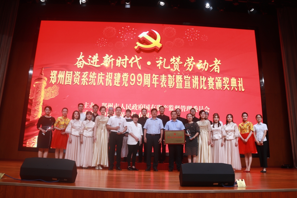 為慶祝中國(guó)共產(chǎn)黨成立99周年,重溫黨的光輝歷程,傳承黨的優(yōu)良傳統(tǒng),6月30日下午,鄭州市國(guó)資委舉行“奮進(jìn)新時(shí)代·禮贊勞動(dòng)者”——鄭州國(guó)資系統(tǒng)慶祝建黨99周年表彰暨宣講比賽頒獎(jiǎng)典禮,集團(tuán)黨委書(shū)記、董事長(zhǎng)萬(wàn)永生,監(jiān)事會(huì)主席李靜波,以及集團(tuán)優(yōu)秀基層黨組織、優(yōu)秀共產(chǎn)黨員、優(yōu)秀基層代表、獲獎(jiǎng)節(jié)目代表等共計(jì)20余人參加此次頒獎(jiǎng)典禮。
