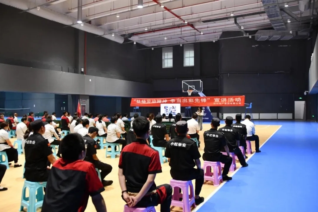 宣講團(tuán)第一組赴鄭地奧體公司在奧體中心綜合訓(xùn)練館展開宣講,鄭地奧體、中航物業(yè)保潔及安保等一線員工共100余人參加了此次宣講活動(dòng)。來自黨群黨支部王曉婕、人力資源黨支部馬遠(yuǎn)俊、黃河兩岸公司黨支部吳林熹、都市開發(fā)公司黨支部馮靜、投資管理公司黨支部范瑩,從學(xué)習(xí)貫徹習(xí)近平總書記重要回信精神、“講好黃河故事”、“ 絲路精神”和共筑中國夢等方面,通過身邊人身邊事,以小見大,講述了一個(gè)個(gè)平凡而偉大的勞動(dòng)者的故事,號召全體黨員同志進(jìn)一步樹立勞動(dòng)觀念、弘揚(yáng)勞動(dòng)精神,爭做出彩鄭地人,以一流的業(yè)績和實(shí)際行動(dòng)擔(dān)當(dāng)重任,為集團(tuán)高質(zhì)量發(fā)展貢獻(xiàn)力量。