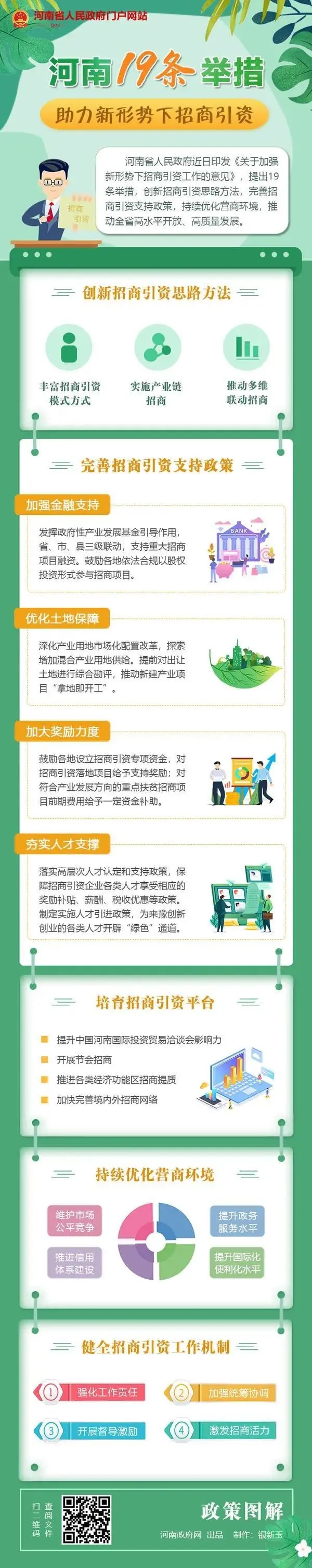 在新形勢下,河南如何做好招商引資工作?近日,河南省政府印發(fā)《關(guān)于加強新形勢下招商引資工作的意見》(以下簡稱《意見》),提出19條舉措,創(chuàng)新招商引資思路方法,完善招商引資支持政策,持續(xù)優(yōu)化營商環(huán)境,推動全省高水平開放、高質(zhì)量發(fā)展。