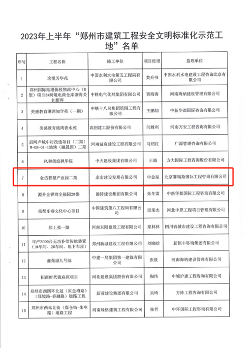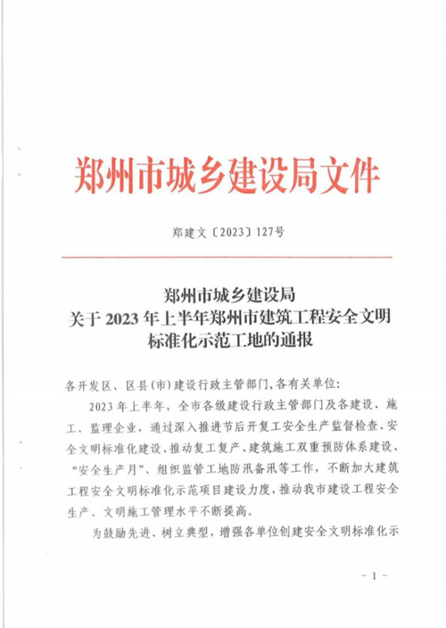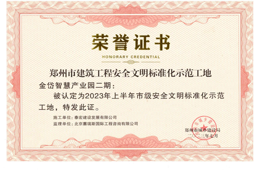 金岱智慧產(chǎn)業(yè)園項(xiàng)目榮獲鄭州市建筑工程安全文明標(biāo)準(zhǔn)化示范工地稱號(hào)