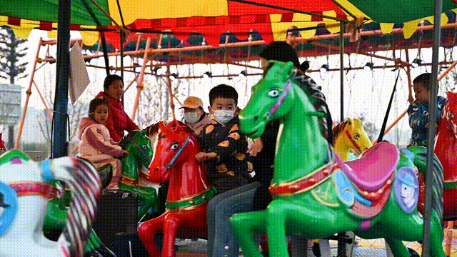 場(chǎng)外排隊(duì)等候,場(chǎng)內(nèi)激情碰撞!兒童游樂(lè)區(qū)的碰碰車(chē)帶領(lǐng)大朋友、小朋友放松身心,歡樂(lè)駕駛,碰出新年好運(yùn)!