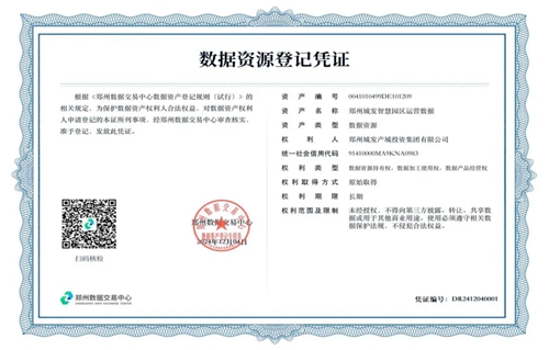 12月4日,城發(fā)集團下屬子公司鄭州城發(fā)產(chǎn)城投資集團有限公司(以下簡稱“城發(fā)產(chǎn)城公司”)在鄭州數(shù)據(jù)交易中心成功完成了“鄭州城發(fā)智慧園區(qū)運營數(shù)據(jù)”的資產(chǎn)登記,喜獲數(shù)據(jù)資源登記憑證,成為鄭州市首家將產(chǎn)業(yè)園區(qū)運營數(shù)據(jù)資產(chǎn)入表的國有企業(yè)。