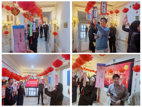 城市更新事業(yè)部舉辦了“團圓迎元宵,黨工聚合力”猜燈謎活動。一排排紅彤彤的燈籠高高掛起,每個燈籠下方都有一條待開啟的燈謎,內容涵蓋傳統(tǒng)文化、黨建知識、黨紀法規(guī)、廉政文化及平安建設等相關內容,既有通俗易懂的趣味猜題,也有較為復雜的抽象謎題,員工們在歡聲笑語中解答謎題,同時也學習了不少有用的知識。