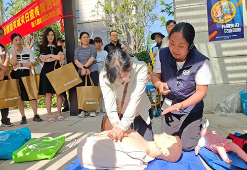 在互動體驗(yàn)環(huán)節(jié),工作人員展示結(jié)繩演練并指導(dǎo)實(shí)操,保障群眾掌握基本結(jié)繩逃生技能。現(xiàn)場還設(shè)置了仿真人體模型,醫(yī)護(hù)人員指導(dǎo)群眾進(jìn)行心肺復(fù)蘇操作練習(xí),同時(shí)為群眾演示海姆立克急救法操作流程。