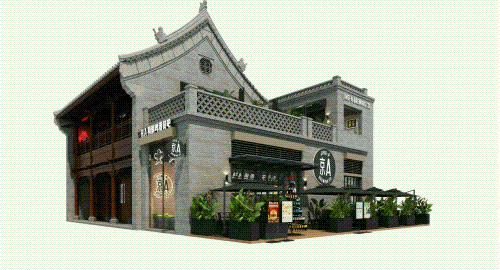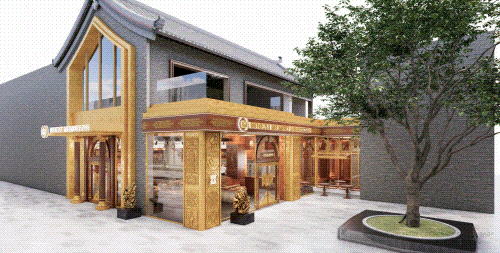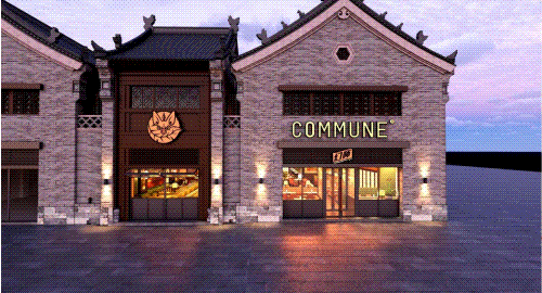 以COMMUNE幻師的門店設(shè)計為例——從效果圖可以看出,建筑外部以青灰色磚墻復(fù)刻商代建筑肌理,檐角神獸造型融入現(xiàn)代燈光設(shè)計,整體風(fēng)格充滿著古樸與時尚。店內(nèi)則以暖色調(diào)營造松弛感,酒墻擺滿了來自全球的精釀。每當(dāng)味蕾觸碰到精釀的麥香,窗外同時飄入來自3600年前夯土的氣息——在這里,顧客喝的不是單純的酒,而是歷史與現(xiàn)代的奇妙敘事。