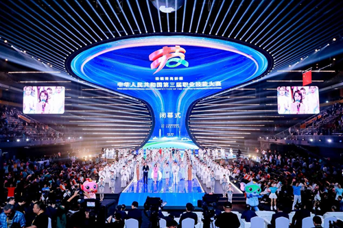 第三屆全國(guó)技能大賽是我國(guó)賽事規(guī)格最高、競(jìng)賽項(xiàng)目最多、參賽規(guī)模最大、影響范圍最廣的綜合性國(guó)家職業(yè)技能賽事。閉幕式上,共為本次大賽106個(gè)競(jìng)賽項(xiàng)目(66個(gè)世界技能大賽選拔項(xiàng)目和40個(gè)國(guó)賽精選項(xiàng)目)的獲獎(jiǎng)選手頒發(fā)獎(jiǎng)?wù)?。激?dòng)人心的頒獎(jiǎng)和創(chuàng)意十足的演出結(jié)束后,大賽組委會(huì)主任、人力資源社會(huì)保障部部長(zhǎng)王曉萍宣布大賽閉幕。大賽組委會(huì)主任、河南省省長(zhǎng)王凱致閉幕詞。承辦第四屆全國(guó)技能大賽的浙江省省長(zhǎng)劉捷承接會(huì)旗。世界技能組織首席執(zhí)行官大衛(wèi)·霍伊發(fā)表視頻致辭。