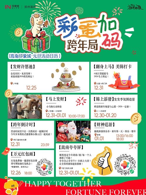 12月31日-1月3日,憑快樂(lè)幣可免費(fèi)騎小馬、抽獎(jiǎng)、兌換零食禮包,輕松實(shí)現(xiàn)童趣與味蕾雙重滿(mǎn)足??缒暌梗虉?chǎng)營(yíng)業(yè)時(shí)間延長(zhǎng)至23:00后自然閉店,大屏同步跨年倒計(jì)時(shí),和親友一起在歡呼聲中迎接2026,氛圍感直接拉滿(mǎn)!