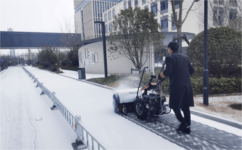 城發(fā)產城公司密切關注天氣變化,提前部署應急隊伍。采用“機械+人工”協同模式,按“先主后次”原則,用除雪滾刷快速清掃主干道,人工細化清理死角,最后鋪灑融雪劑,實現路面無積雪、無結冰,為園區(qū)企業(yè)員工出行保駕護航。