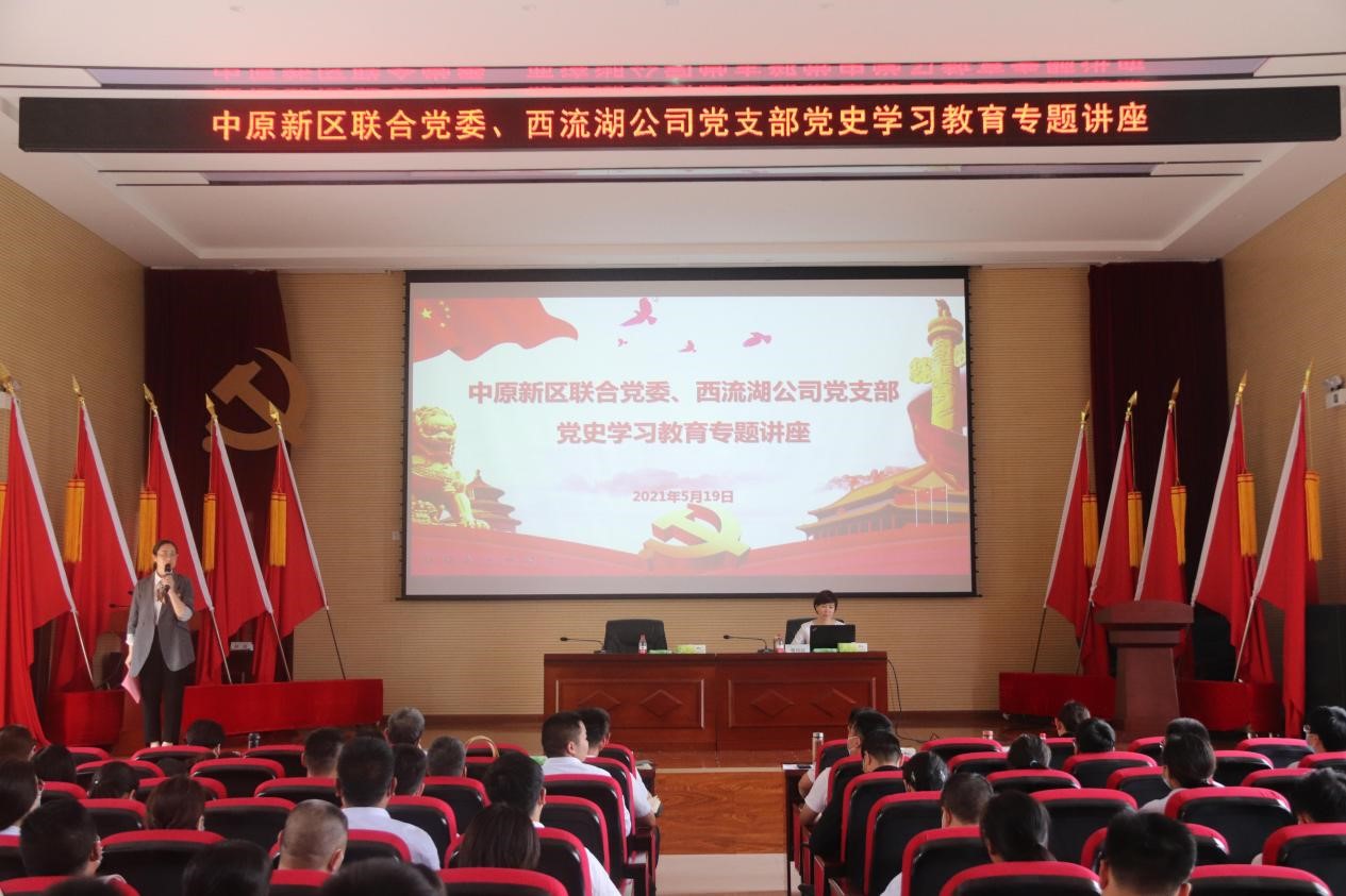 黨史是最好的教科書和營養(yǎng)劑,在中國共產(chǎn)黨成立100周年之際,為扎實開展好黨史學習教育,引導廣大黨員干部職工知史愛黨、知史愛國,進一步樹牢“四個意識”、堅定“四個自信”、做到“兩個維護,推動黨史學習教育取得實效,5月19日下午,中原新區(qū)聯(lián)合黨委、西流湖公司黨支部邀請河南省委黨校黨史教研部副主任、副教授楚向紅老師開展黨史學習教育專題講座。公司領(lǐng)導班子、西流湖公司、鄭地發(fā)展以及中原新區(qū)聯(lián)合黨委黨員職工代表共計150余人參加講座。