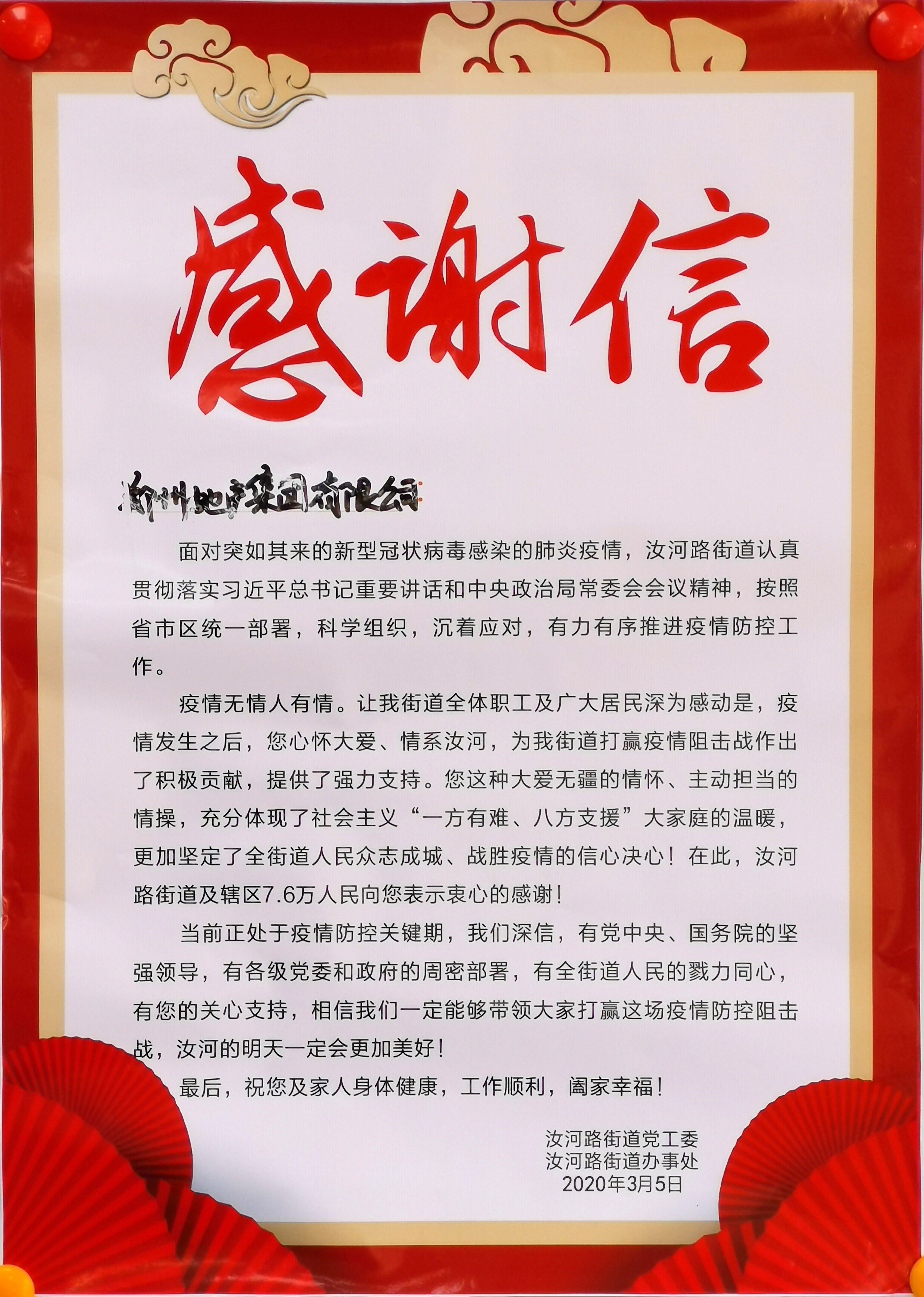 桐淮社區(qū)書記王輝代表社區(qū)工作人員和志愿者向集團領(lǐng)導(dǎo)送上《感謝信》,并表示集團的慰問讓一線工作人員心里充滿了溫暖,也進一步堅定了開展疫情防控的信心和決心。在地產(chǎn)集團等社會各界的關(guān)心關(guān)注下,在無數(shù)雷鋒式志愿者的共同努力下,我們一定會打贏新冠肺炎疫情防控這場硬仗。