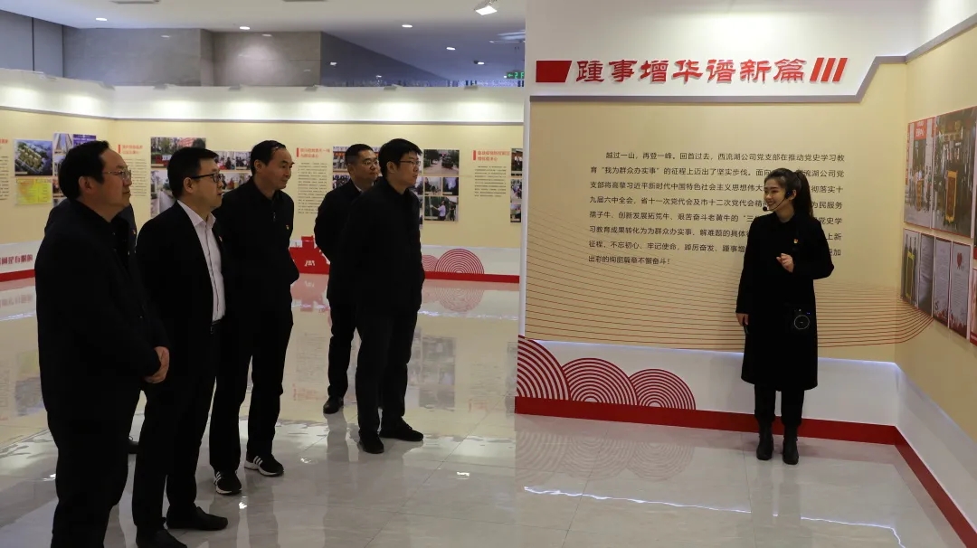 第二站,指導(dǎo)組一行參觀(guān)了金岱科創(chuàng)城商務(wù)服務(wù)中心,詳細(xì)了解了金岱科創(chuàng)城核心板塊、商代王城遺址核心板塊及小李莊火車(chē)站核心板塊的規(guī)劃建設(shè)情況。隨后實(shí)地觀(guān)摩了西流湖公司黨支部黨史學(xué)習(xí)教育“我為群眾辦實(shí)事”主題展,對(duì)西流湖公司黨支部助推金岱迭代升級(jí)、全力打通“斷頭路”、打造精品安置房、積極投身防汛搶險(xiǎn)疫情防控一線(xiàn)等踐行“八心”服務(wù)、為群眾辦實(shí)事好事的一系列工作舉措給予了高度評(píng)價(jià)和充分肯定。