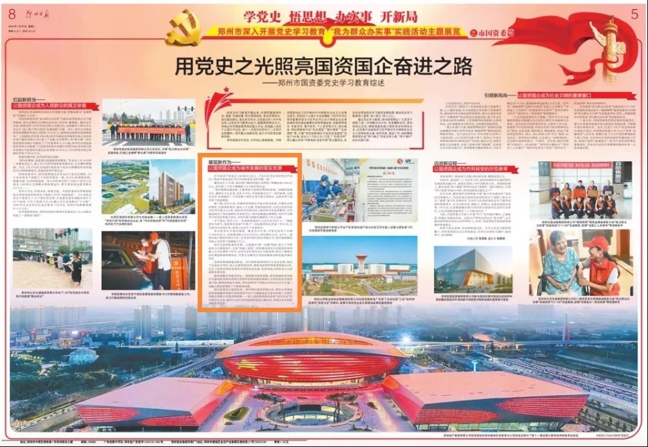 剛剛過去的2021年是我們黨建黨一百周年。在建黨百年的重要時刻,黨中央深謀遠慮,鑒往知來,在全黨深入開展黨史學習教育活動,從百年黨史中汲取新時代趕考路的智慧和力量。1月25日,鄭州市深入開展黨史學習教育“我為群眾辦實事”實踐活動主題展覽之市國資委篇《用黨史之光照亮國資國企奮進之路--鄭州市國資委黨史學習教育綜述》被《鄭州日報》刊發(fā)、《人民日報》客戶端轉載。